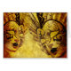 Dos máscaras barrocas doradas venecianas sobre fondo granulado con elementos florales
