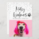 Difunde alegría con esta tarjeta de foto con tema de mascota navideña moderna y elegante, perfecta para amantes de perros y gatos. Presenta tu foto con las palabras Merry Woofmas en una tipografía moderna de estilo manuscrito y huella de pata. Agrega 2 fotos y tu mensaje personal para este diseño de foto de mascota navideña chic y divertido y hazlo tu propia tarjeta de Navidad original única. Segunda foto en la parte posterior. CONSEJO DE FOTO: Pre-recorta tu foto ANTES de subirla y/o usa la herramienta de RECORTE en la sección PERSONALIZAR para ajustar la ubicación dentro del área del template. Para obtener ayuda con el diseño o personalización o transferir el diseño a otro producto, contacta al diseñador ANTES DE PEDIR a través de la pestaña de MENSAJE de Chat de Zazzle a continuación o envía un correo electrónico a thepetstarofficial@gmail.com.