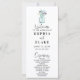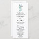 Este programa de bodas es la combinación perfecta entre rústico y elegante. El fondo blanco y el sencillo tipo de letra negro le confieren un aspecto clásico, mientras que el rústico frasco de albañil lleno de flores y vegetación verde, violeta, azul y blanca le da un toque de encanto rústico. Este diseño es perfecto para parejas que buscan algo sencillo, aunque romántico y rústico. En la parte delantera del programa figuran los nombres de las parejas, la fecha de boda, la ciudad y el estado, junto con la orden de la ceremonia. En la parte trasera del programa se muestra la fiesta de bodas, asegurándose de que todo el mundo sea presentado a los invitados. El texto principal está escrito en un sencillo tipo de letra negro, que es fácil de leer, mientras que las palabras Bienvenida, Ceremonia y Fiesta de la Boda están escritas en un tipo de letra de escritura negro bonito que añade un toque de elegancia al diseño. Los nombres de las parejas se muestran de forma destacada en un audaz tipo de letra negro simple, con espacio entre letras utilizado para hacer que destaquen. Esto añade un toque personal al programa y deja claro de quién se trata el boda. Ya sea que tenga un boda rústico al aire libre, una pequeña ceremonia íntima o un gran romance, este programa de bodas será la adición perfecta a su día especial.