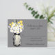 Tarjeta de respuesta -- Perfecta para una boda de estilo campestre o tal vez simplemente amas los frascos de Mason. Frasco de Mason colgado de un gancho lleno de flores silvestres campestres. Un fondo GRIS con el frasco de Mason colgado con Billy Balls amarillos y margaritas blancas silvestres. Si tiene alguna pregunta sobre este diseño o desea un cambio de color, por favor envíeme un correo electrónico a paula@labellarue.com. ¡También revise las tarjetas de INVITACIÓN PRINCIPAL, RECEPCIÓN y ASIENTOS DE INVITADOS para que coincidan!