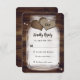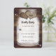 Tarjetas RSVP de bodas caseras rústicas personalizadas con botellas de masón con un frasco de albañil con dos corazones de bupón sobre un fondo de madera de grano. Personaliza fácilmente en línea. Artículos de juego disponibles para complementar estas adorables tarjetas RSVP de boda rústica.