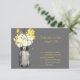 Una tarjeta RSVP que coincida perfecta para un boda de estilo rural o tal vez te guste Mason Jars! Mason Jar colgando de un gancho lleno de flores silvestres de campo. Un fondo gris pizarra frente al colgante Mason Jar y flores silvestres de tonos amarillos y marrones blancos. Si tiene alguna pregunta sobre este diseño o desea un cambio de color, por favor envíeme un correo electrónico a paula@labellarue.com También compruebe que las tarjetas RSVP, RECEPTION y GUEST SEATING se correspondan!