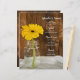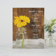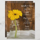 Personalizar la moda rústica Mason Jar y el menú de bodas campestres de margarita amarilla con los detalles de la comida que se sirven en el almuerzo de su ducha de novia informal pero elegante, en la cena de la recepción matrimonial o en el brunch post boda añadiendo la ensalada o el primer curso, entrante o segundo y postre o tercer curso. Personalízalo con los nombres de la novia y el novio, la ubicación del lugar y la fecha del evento. Esta encantadora carta boda se caracteriza por una fotografía floral realzada digitalmente de un frasco de vidrio con flores de margarita amarilla y fondo de madera marrón. Ideal para una celebración informal de un rancho o fiesta de granero estilo granja.
