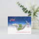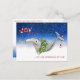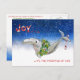 Este delfín del dibujo animado tiene una guirnalda del día de fiesta encendido para el navidad en un océano de estrellas. La tarjeta lee "alegría" en frente y debajo "… de él está la masopa de la vida"
