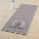 El loto elegante representa la estera de meditación de yoga con un toque blanco sobre gris con un efecto texturado de lino. La luminosa figura del asiento tiene una mandala rodeando su cabeza. Para tu estudio de práctica de yoga o meditación. Crea un aspecto elegante.
