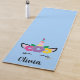 Es una alfombra de yoga unicornio de arcoiris lindo de color azul claro. Puede personalizar fácilmente su nombre en él. Un regalo perfecto para alguien es el fitness, el yoga y el ejercicio.