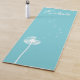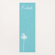Un diente de león blanco brillante con semillas que soplan y la palabra, Exhale, escrita en un guión elegante decoran esta alfombra de yoga sobre un fondo turquesa, lo que hace que sea perfecto para estirarse en tu próxima clase.