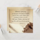 La tarjeta plana de saludo con las escrituras de citas inspiradoras representa manos rezando en las páginas de una Biblia abierta. Presenta una motivadora Biblia Cristiana Verse Mateo 6:6, "Cuando ores, entra en tu cámara más interior y estarás solo con el Padre Dios, rezando para él en secreto. Y tu Padre, que ve todo lo que haces, te recompensará abiertamente". El saludo, la oración pueden ser personalizados o borrados para un mensaje escrito a mano.