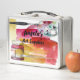 Almacene su pintura u otros materiales de arte en esta caja de almuerzo/ caja de material artístico. La parte delantera y trasera representan pintura y herramientas de acuarela. El frente tiene tu texto.
