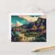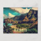 Una postal hawaiana de una cala tropical de playa con montañas y una playa aislada con palmeras. Esta postal artística es parte de una serie de postales creadas en un estilo de arte post-impresionismo e inspiradas en diferentes lugares alrededor del mundo y no necesariamente representan una ubicación real