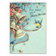 Bonita tarjeta de felicitación vintage para dar los mejores deseos en un matrimonio feliz. campanas Bodas, cintas, rosas rosas rosas y pájaros azules