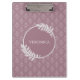 Aprecia notas y recordatorios en una superficie segura con un portapapeles personalizado de Damask elegante. El diseño del portapapeles presenta un elegante fondo de damasco y un espacio para añadir su nombre adornado con delicado follaje. Artículos de regalo adicionales disponibles con este diseño así como una variedad de colores.