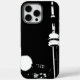funda robusto Guay & Classy para iPhone 16. Para los ocupados representantes de ventas de Toronto, visitantes, empleados de oficina, propietarios de negocios. Torre de Toronto con Luna Llena. Esténcil blanco y negro. Foto.