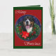 Mayor perro suizo de la montaña cercado en una guirnalda del día de fiesta. Regalos fabulosos del navidad para los amantes de Swissy. Variedad de mercancía del día de fiesta.