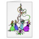 Mujeres con cintas de colores bailando alrededor de un maypole.