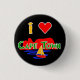 © Sunny Mars Designs - Cape Town South African Cute Personalizado Personalizable Badges - Este genial, personalizado, viaje de Sudáfrica me encanta el botón, insignia o pin de Ciudad del Cabo, presenta un colorido y divertido ilustracion vectorial personalizado adorable de Table Mountain de Ciudad del Cabo, el océano y un pequeño yate, en los colores de la bandera sudafricana.