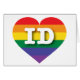 Esta tarjeta presenta un corazón con un diseño de orgullo arco iris y la identificación de las letras. Encima de las rayas arcoiris, dentro del corazón, están el negrita, blanco, ID de letras mayúsculas, la abreviatura oficial del estado de Idaho, el estado de las gemas. La tarjeta está en blanco dentro, esperando tu texto personalizado o tus sentimientos escritos a mano. Muestra tus verdaderos colores, apoya el matrimonio igualitario y celebra el orgullo gay.