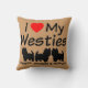 Esta almohada personalizado "I Love My Three Westies" es perfecta para cualquiera que posea tres perros del West Highland White Terrier o más comúnmente conocidos como "Westies", sólo cambia a sus propios nombres de perro.