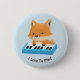 Un lindo botón para que los niños expresen su amor por tocar instrumentos musicales. Cuenta con un zorro lindo con sus patas en el teclado del piano. El texto dice "¡Me encanta jugar!"