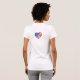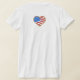Una bandera y corazones norteamericanos se combinan para hacer este lindo gráfico patriótico que dice "Amo a Estados Unidos". Hay una marca de acompañamiento en la parte posterior de la camiseta.
