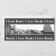 Un marcador con mi original dibujo a lápiz de realismo de un grupo de libros, algunos apilados en una pila y otros de pie o inclinados.