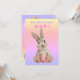 Esta adorable tarjeta de Pascua cuenta con un precioso y detallado conejito de Pascua que sostiene un huevo de colores en la parte delantera. El texto dice: "¡Haces que mi corazón se aguante!" El fondo es amarillo oscuro, naranja, rosa, morado con puntos de polka blanco. Al revés de la tarjeta hay 4 huevos de Pascua pintados en la parte inferior con una bonita y pequeña chica amarilla sobre uno. En la parte superior hay otra pequeña chica saliendo de su cáscara de huevo. El texto dice "Feliz Pascua, pequeña" y es personalizable si quieres cambiarla. El fondo es el mismo sombrío sólo al revés. ¡Una tarjeta adorable para el más pequeño de la familia!
