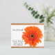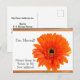 ¡Presentamos nuestra tarjeta postal de anuncio de mudanza! Celebre su nuevo hogar con nuestro encantador diseño, que presenta un fondo de madera rústica y una hermosa margarita gerbera naranja. Personalice el texto interior, la fuente y los colores para hacerlo único