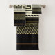 Esta composición tiene un motivo tradicional de línea de media luna, con formas de línea de jazmín de oro claro muy relacionadas con el fondo de un inmaculado fondo de tela de contraste negro, creando un conjunto de toallas de baño de estilo clásico.