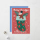 Tarjeta de vacaciones de Media de Navidad con un muñeco de nieve: Envía deseos cálidos y alegres con esta tarjeta festiva que presenta un encantador muñeco de nieve ubicado en una media navideña. Es una forma encantadora de difundir la alegría de la temporada a sus seres queridos.