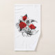 Contorno, luna de media luna mecánica con engranajes, decorada con rosas rojas con tallo negro y hojas sobre fondo blanco. Steampunk