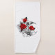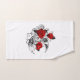 Contorno, luna de media luna mecánica con engranajes, decorada con rosas rojas con tallo negro y hojas sobre fondo blanco. Steampunk
