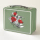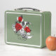 Contorno, luna de media luna mecánica con engranajes, decorada con rosas rojas con tallo negro y hojas sobre fondo blanco. Steampunk