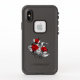 Contorno, luna de media luna mecánica con engranajes, decorada con rosas rojas con tallo negro y hojas sobre fondo blanco. Steampunk