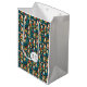 gato Patrón de estilo camisa hawaiana con repetición de ginger cat tropical, bolsa de regalo con lindo gatito gatito mascota escondiendo la etiqueta de regalo de amante del gato para personalizar con tus iniciales el texto azul marino con hojas verdes y flores amarillas y rojas perfecto para el envolver de amante del gato o envolver regalo para su regalo para mascotas