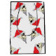 ¡Ho Ho HOLY fuma! ¿Es un cráneo con un Sombrero de Santa y una cabra en esa bolsa de regalo? ¡Te apuesto tu dulce trineo! Esta impresionante y temerosa bolsa de regalo de vacaciones muestra los cráneos de Santa Claus sobre un fondo blanco con detalles negros.
