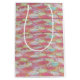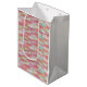 Bolsa de regalo pintada a mano, varios círculos y remolinos, creada como arte de medios mixtos.