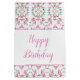 Personaliza el texto de feliz cumpleaños a cualquier ocasión especial en esta bolsa de regalo decorativa en blanco, rosa y verde azulado, el texto también es desmontable si lo prefieres, y el fondo se puede cambiar a cualquier color para complementar tu estilo.