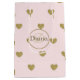 Una bolsa de regalo elegante y minimalista que presenta una letra de monograma (que puede ser la inicial de su nombre o logotipo) y nombre en corazones dorados rosa claro. Ideal como bolsa de regalo para cualquier tipo de fiesta, ya sea cumpleaños o ocasiones corporativas. ¡Si necesita ayuda para personalizar este producto, por favor contácteme usando el botón de mensaje a continuación y estaré encantado de ayudar!