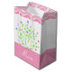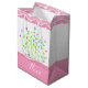 Bolsa de regalo de papel de talla de tote de tamaño medio con estampado rosa y diseño floral. El texto se puede personalizar a cualquier nombre, mensaje o texto que sea extraíble.