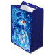 Una bolsa de regalo muy bien hecha adorna con la encantadora escena de un muñeco de nieve brillante en una serena noche de invierno. El diseño de la bolsa incluye un ilustracion vibrante del muñeco de nieve, con sombrero de punta y bufanda, en medio de un paisaje nevado. El fondo combina el azul profundo con el blanco inmaculado, evocando el frío de una velada de invierno. Esta bolsa de regalo sería perfecta para presentar regalos de vacaciones, añadiendo una capa adicional de magia y deleite a la experiencia del destinatario. ¡Me encanta! ¿Puedes describir un tipo diferente de bolso de regalo? Gracias por el