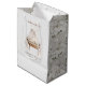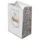 Complete su celebración con esta elegante bolsa de regalo Baby in Bloom con una bassinet vintage, flores de marfil y tonos suaves de boho. La parte delantera muestra texto de personalizable para un toque personal, mientras que los lados muestran un patrón de floración taupe sin fisuras con acentos de palma seca. Ideal para empacar favores, libros o regalos para las futuras madres, esta bolsa complementa cualquier tema neutro, botánico o rústico de ducha.