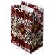 En esta bolsa de regalo se encuentra el bello arte de tejido de tejido de color vintage de 1870 con bellas imágenes de bordado floral. La imagen es de dominio público debido a derechos de autor expirados.