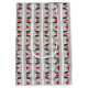 Este divertido diseño presenta un patrón rayado rojo, blanco y gris con un patrón de taza de café.