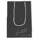 Bolsa de regalo de dama de honor diseñada a medida con un diseño minimalista moderno gris oscuro y blanco.