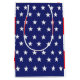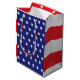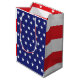 Ya sea que esté celebrando el Día de la Conmemoración, el 4 de julio, o el Día de los Veteranos , esta bolsa de regalo con temática de la bandera estadounidense encantará al destinatario así como a todos los invitados de su fiesta. La bolsa de regalo de colores vivos presenta estrellas blancas en el campo de rayas azules y rojas y blancas. ¡Justo a tiempo para el verano!