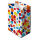 Los puntos azules, rojos, amarillos y naranjas decoran esta bolsa de regalo festiva. Esta brillante bolsa de regalo es genial para niños, adolescentes, adultos, un cumpleaños, tema de circo, tema de carnaval, celebración, etc... El diseño es de arte original.