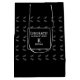 Esta es una gran manera de mejorar los regalos de graduación (y más). Bolsa de regalo personalizada de graduación en blanco y negro que se personaliza con un patrón de aventura. Presentando el texto, "¡Felicidades! Clase de 2025". Tiene un fondo negro clásico con el monograma deseado y el nombre mostrado. Utilice la plantilla para personalizar.