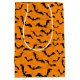 Bolsa de regalo de Halloween mostrada con una huella de murciélagos festivos. Personalizar este artículo o compra tal cual.