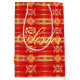 Una bolsa de regalo de tamaño mediano y elegante, el fondo rojo del granero puede cambiarse a cualquier color. El texto de la hermana se puede cambiar a cualquier nombre, o el texto es extraíble.