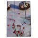 En una mañana helada de invierno, un solo pollito salta por la nieve entre los pinos caídos, y se come en las fresas rojas brillantes del suelo.